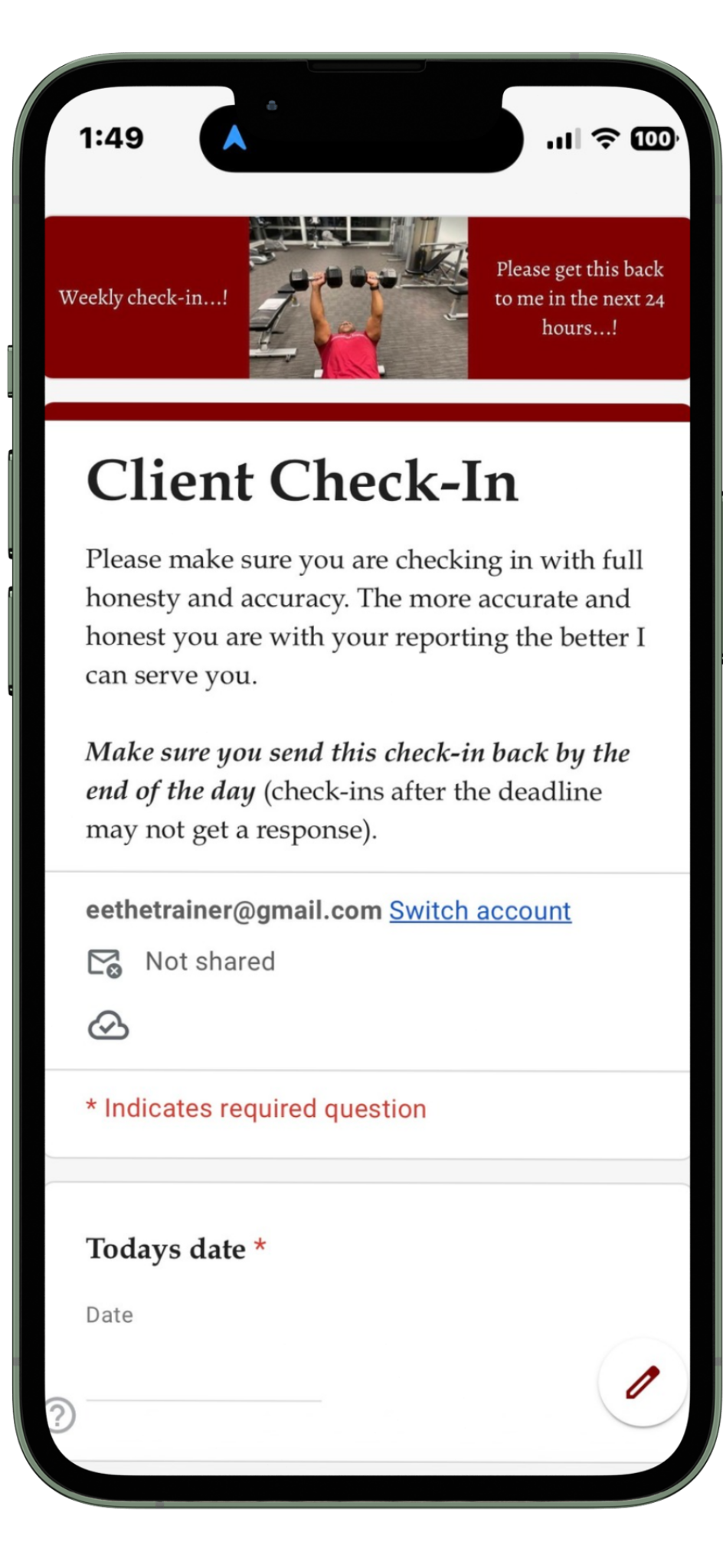 Each week you’ll check-in to make sure we stay on track, address any concerns or upcoming changes we need to make (like travel). The check-in only takes a few minutes to complete.